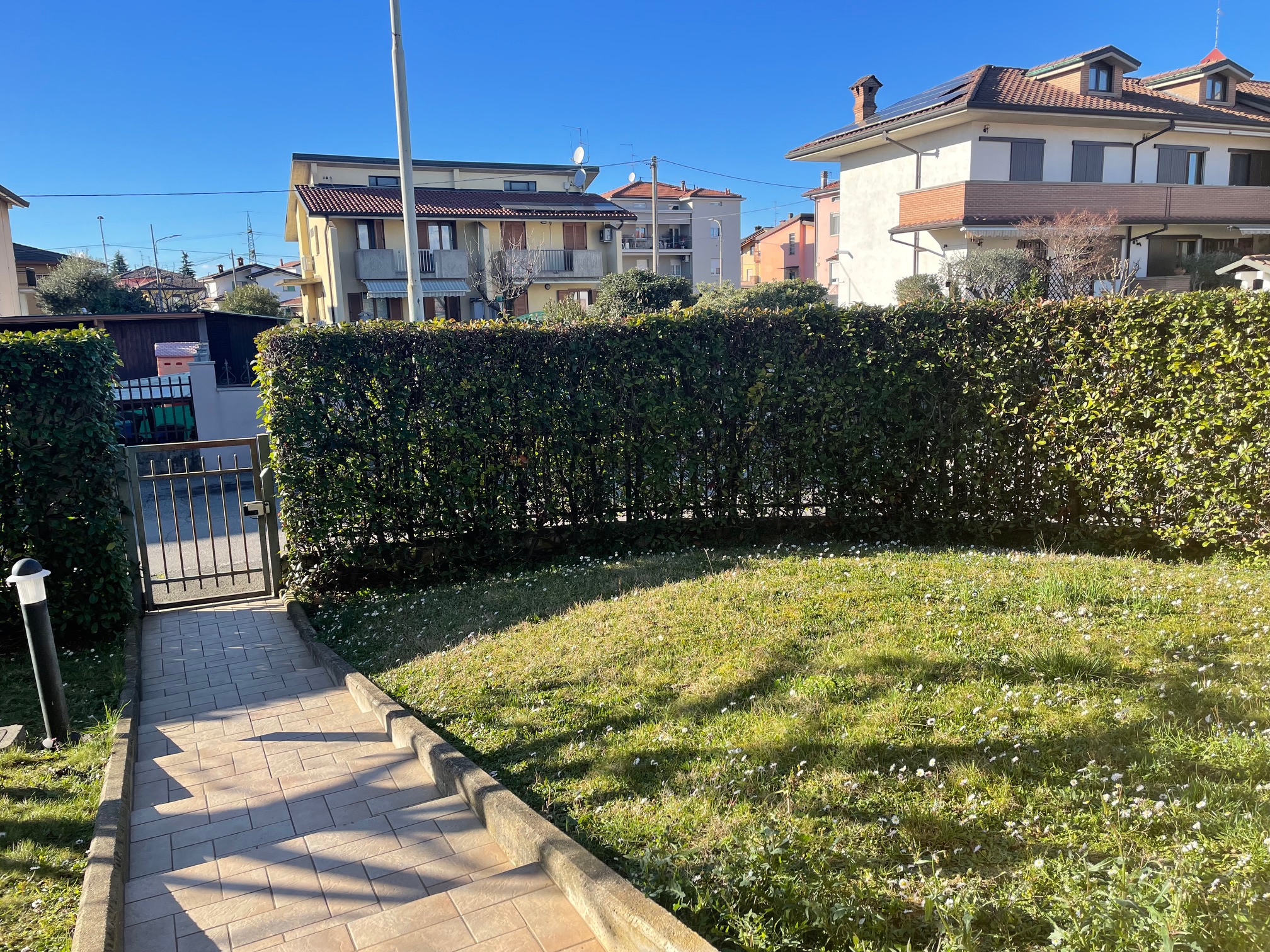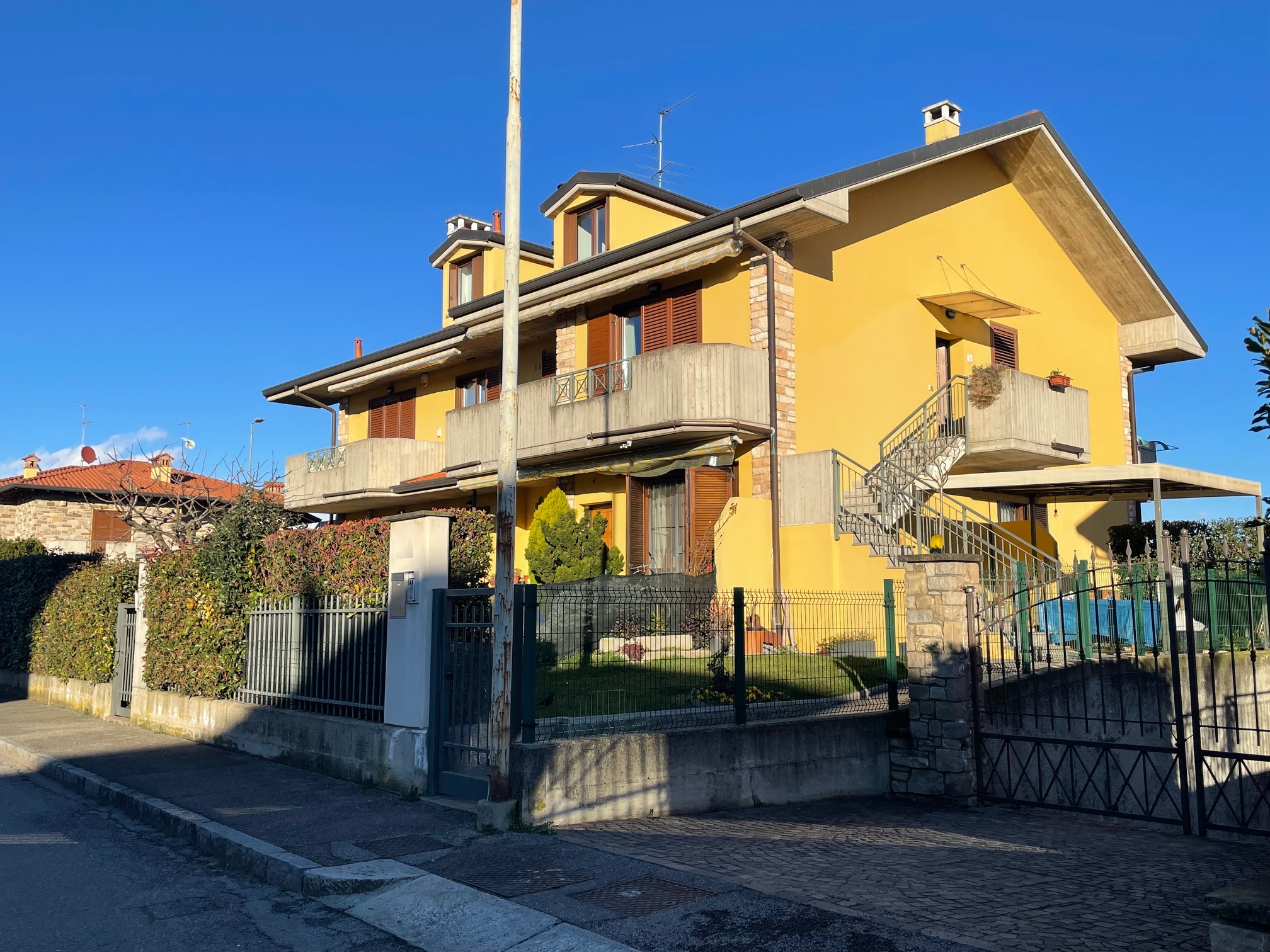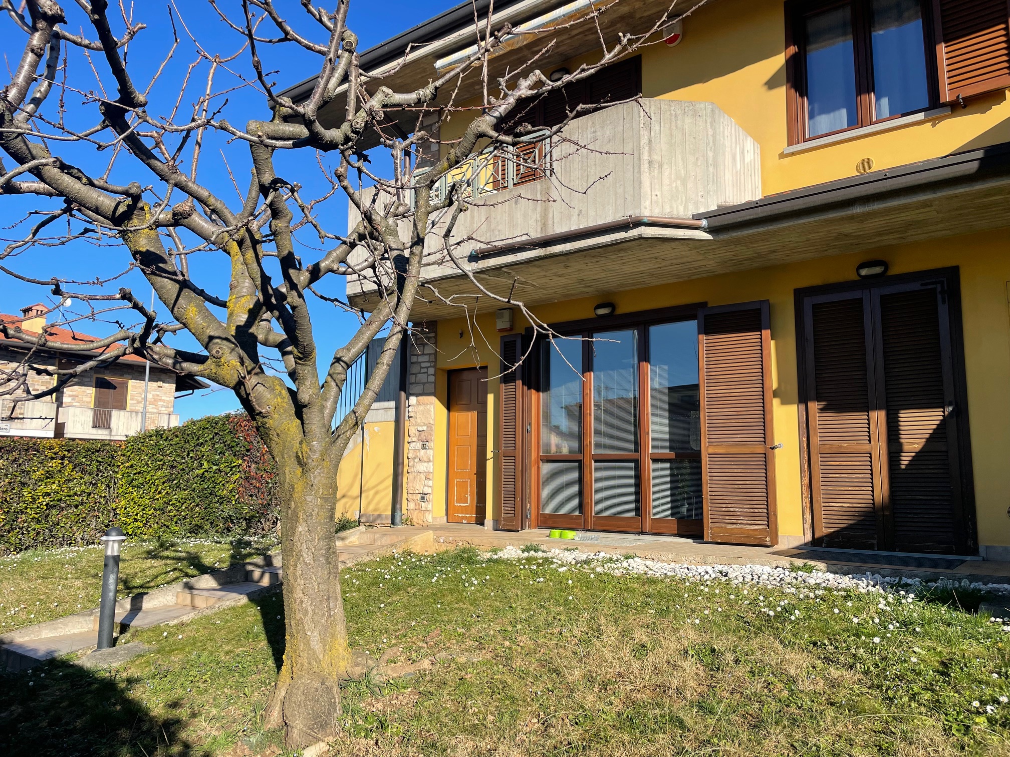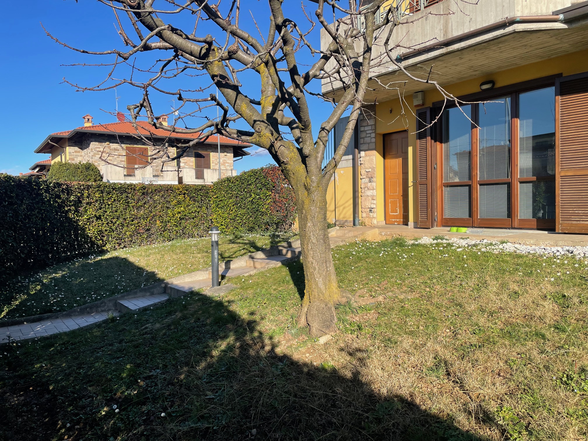 Nel tranquillo contesto residenziale della zona Brembo, proponiamo interessante soluzione al piano terra con giardino privato che circonda l’immobile, ideale per chi desidera uno spazio esterno riservato e vivibile. L’unità è attualmente accatastata e utilizzata come uso commerciale, ma vi è la possibilità di trasformazione in residenziale, offrendo così un’interessante opportunità sia per chi cerca un’abitazione con spazi generosi, sia per chi desidera effettuare un cambio di destinazione d’uso. Internamente gli ambienti si sviluppano con ingresso su luminoso soggiorno con accesso diretto al giardino, cucina abitabile, disimpegno, camera matrimoniale con accesso al terrazzo, cameretta e bagno finestrato con doccia e vasca. Una comoda scala interna collega il piano interrato, dove troviamo un ampio locale pluriuso completo di lavanderia e accesso diretto al box doppio in larghezza. Soluzione versatile, con ottime potenzialità di personalizzazione, situata in zona tranquilla e ben servita.